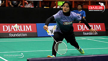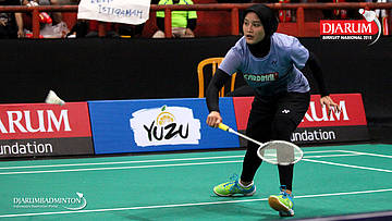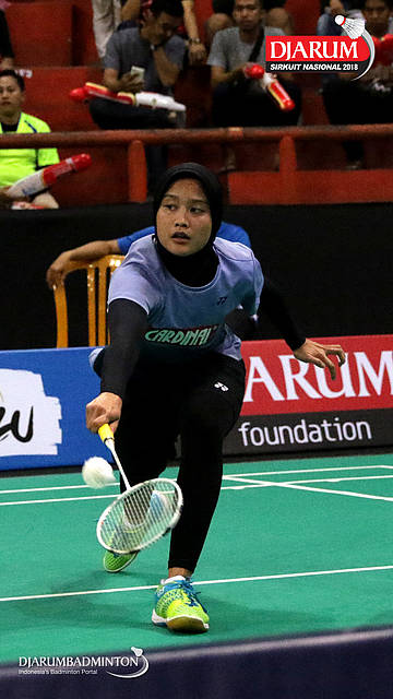 Hanna Ramadini (Mutiara Cardinal) mengembalikan shuttlecock