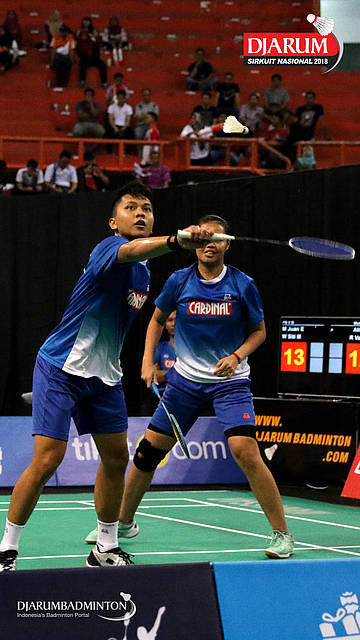 Alif Rafsyah Mauthuthihona/Rayhan Vania Salsabila (Mutiara Cardinal) mengembalikan shuttlecock
