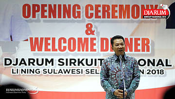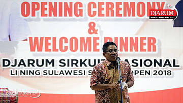 PJ Gubernur Sulawesi Selatan, Dr. Sumarsono (kiri) dan Sekjen PP PBSI, Ahmad Budiarto (kanan) secara resmi membuka gelaran Djarum Sirkuit Nasional Sulawesi Selatan Open 2018, dalam acara Welcome Dinner