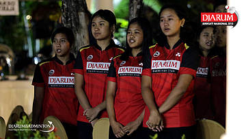 Para atlet PB Djarum Kudus saat menyanyikan lagu Indonesia Raya