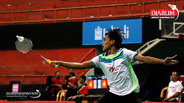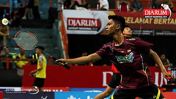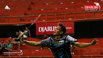 Handoko Yusuf Wijayanto (PB Djarum Kudus) mengembalikan shuttlecock