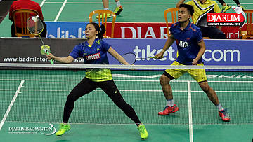 Reza Dwicahya Purnama/Annisya Widya Permatasari (Jaya Raya Jakarta/Mutiara Cardinal) gagal menghadang pengembalian