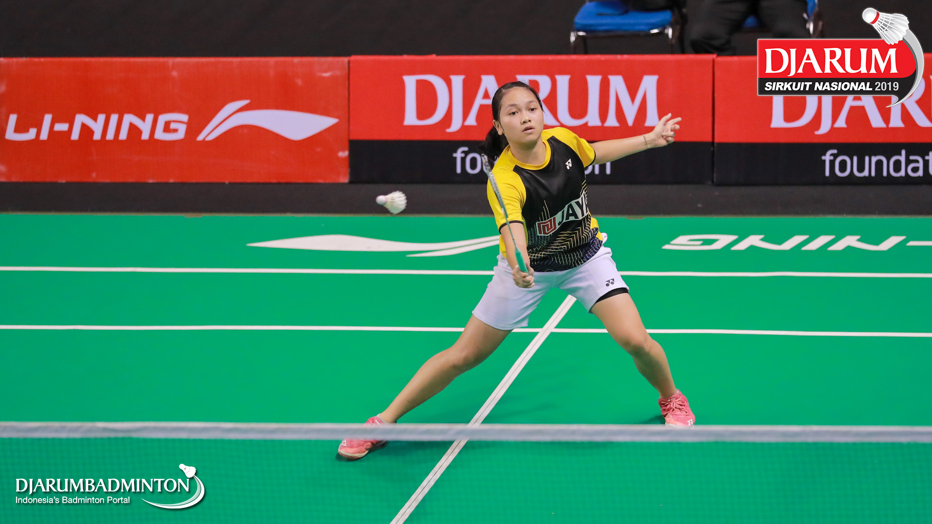 Ovilia Riza Wulandari (PB Djarum, Kudus) berusaha menggapai serangan