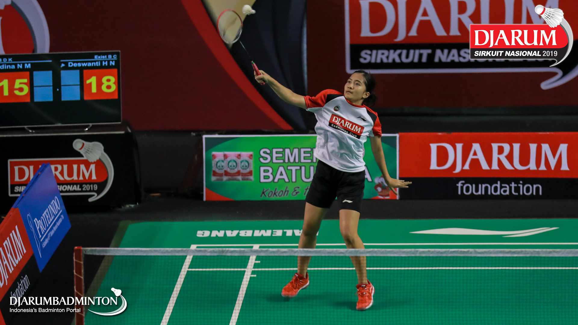 I Putu Pande Sheva Brahmantya Putra+Sintia Dewi Yuliani (PB Djarum, Kudus) menyambar pengembalian tanggung