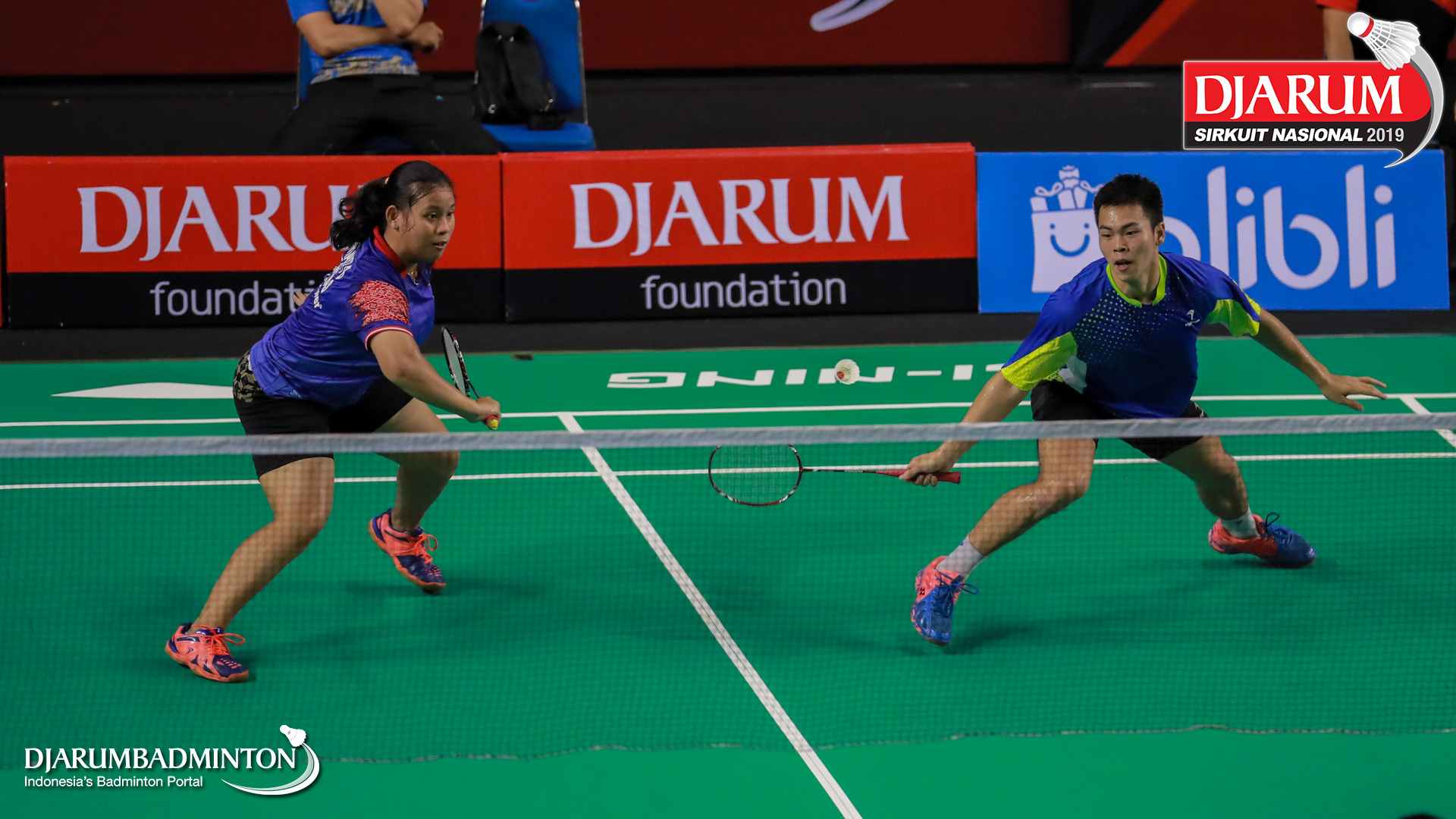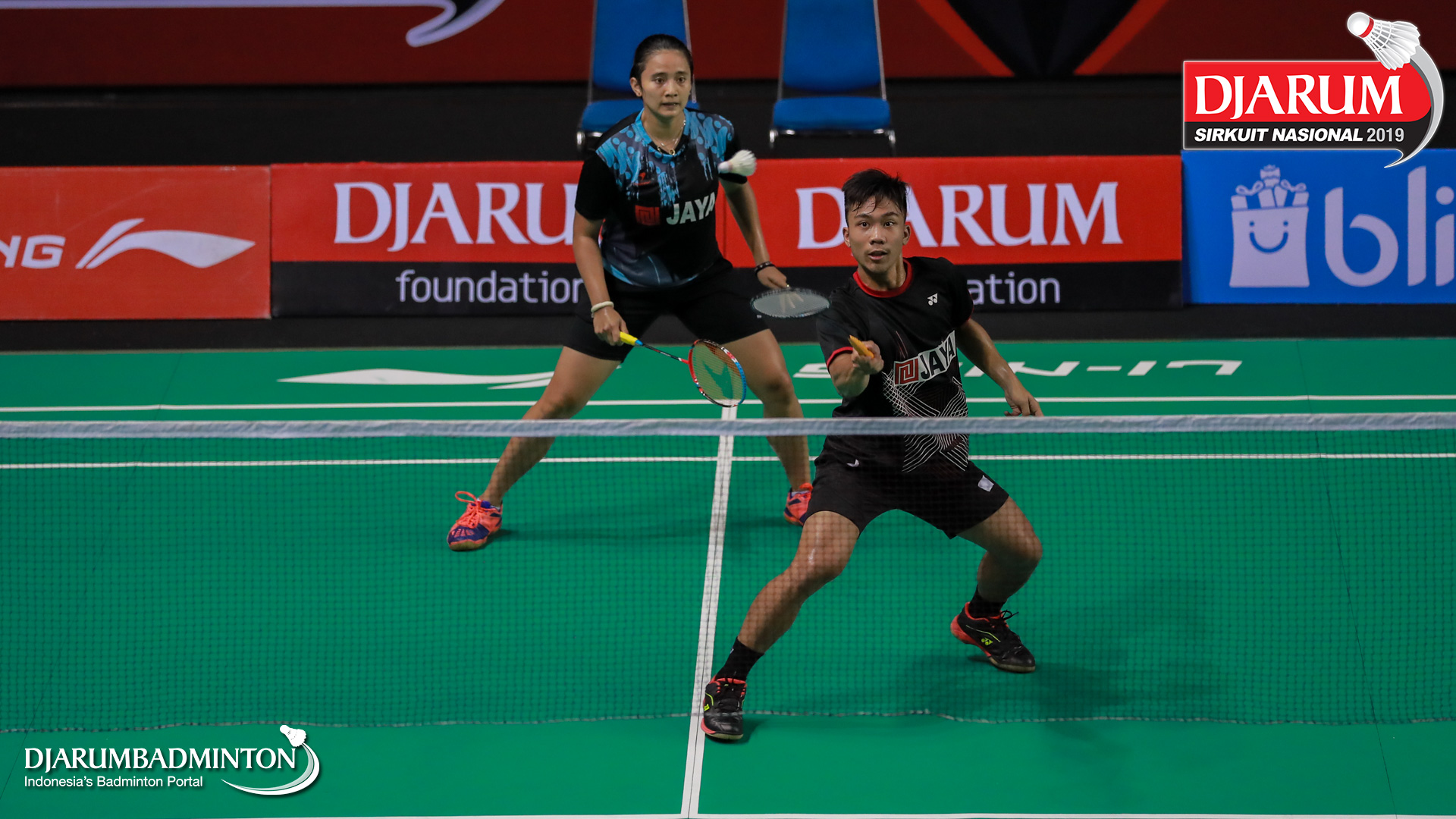 Amri Syahnawi+Pia Zebadiahbernadet (Jaya Raya Jakarta) mengembalikan serangan