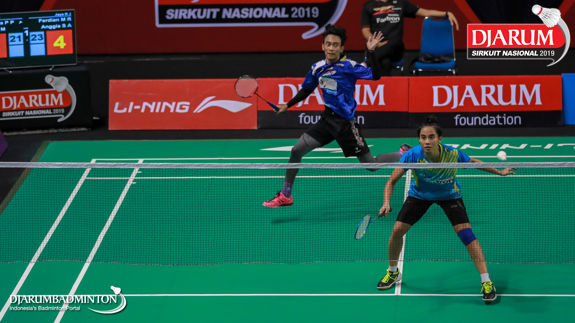 Ferdian Mahardika R+Anggia Shitta Awanda (Jaya Raya Jakarta) mengembalikan shuttlecock
