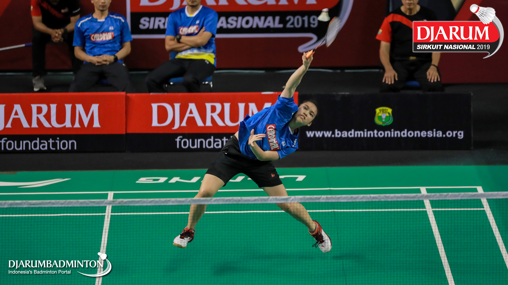 Angelica Febriana Timporok (Mutiara Cardinal, Bandung) menyambut shuttlecock
