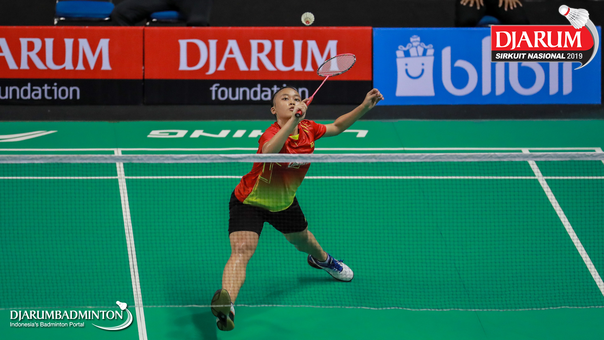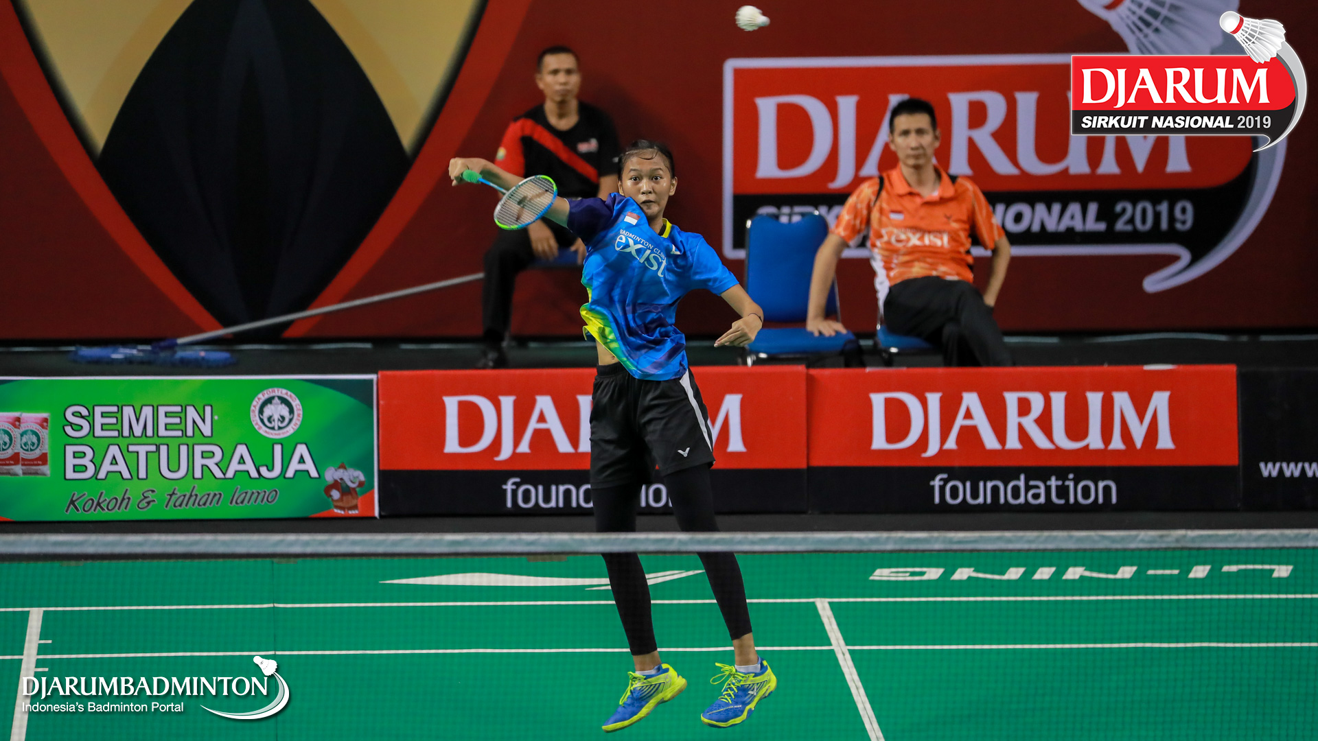 Siti Sarah Azzahra (Exist Badminton Club) mengembalikan serangan