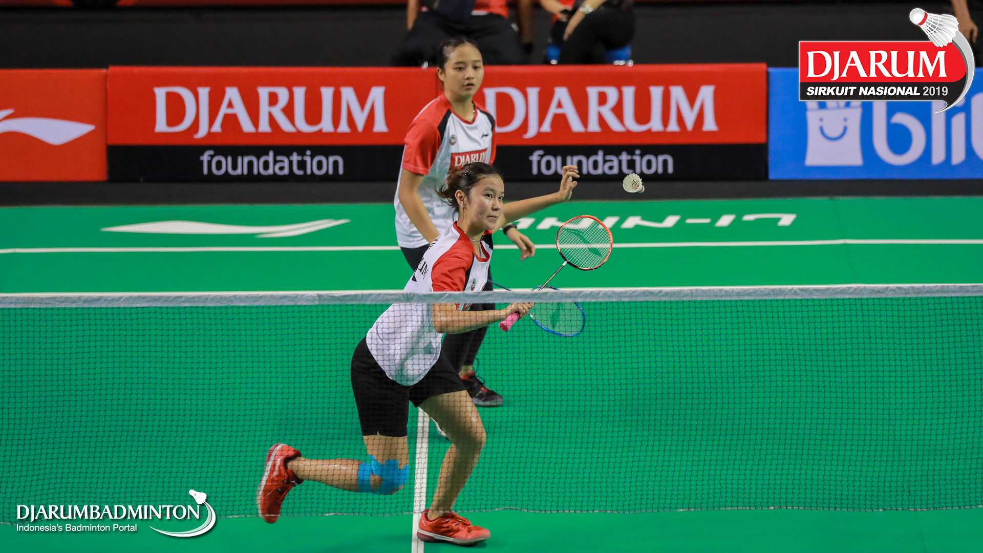 Salli Lin+Sintia Dewi Yuliani (PB Djarum, Kudus) bersiap menyambut shuttlecock