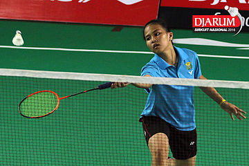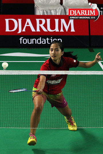 Irdina Naurah (Djarum Kudus) berusaha menggapai pengembalian.