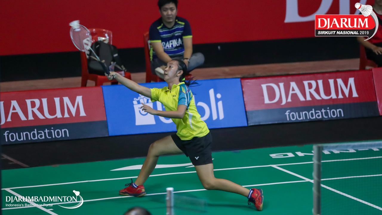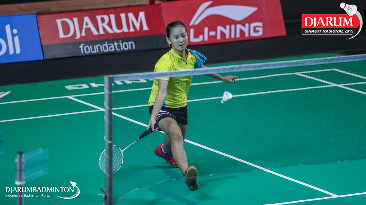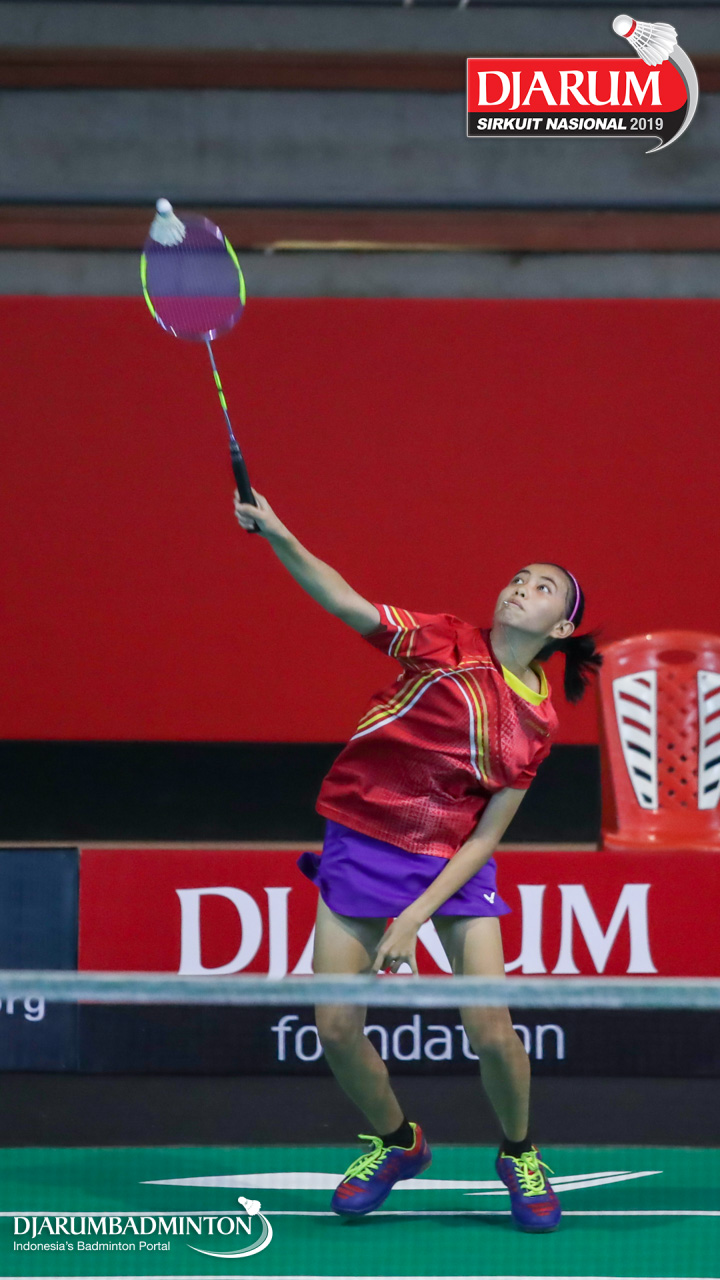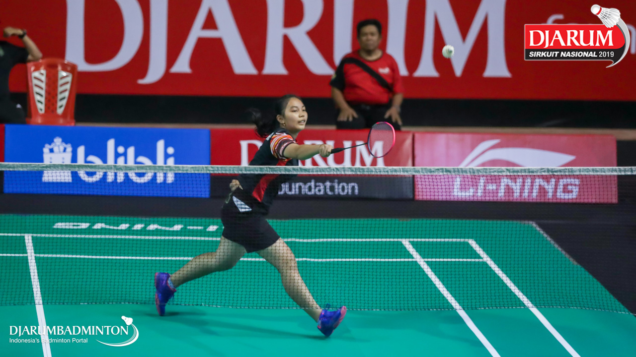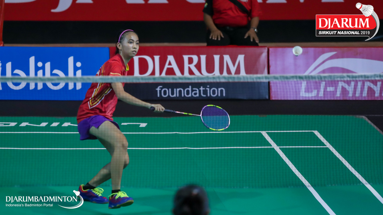 Angelica Ladasi (PPLP SULUT) bersiap menyambut shuttlecock
