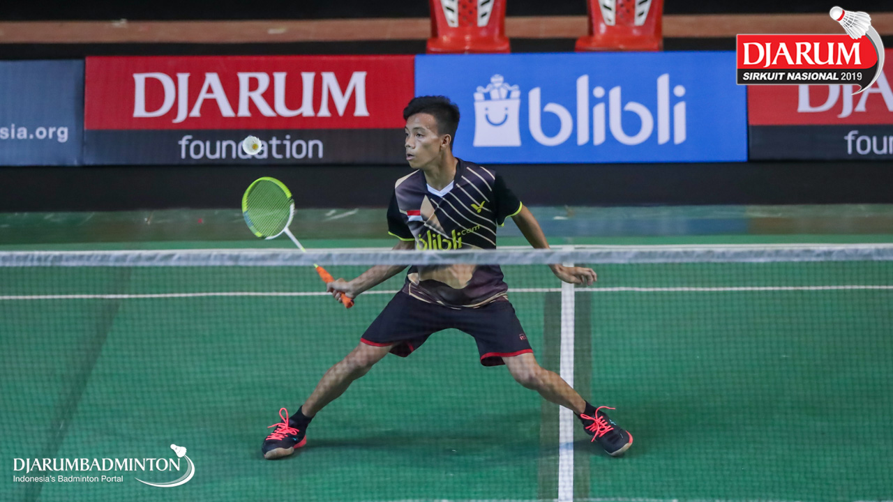 Aria Dinata (Jaya Raya Jakarta) mengembalikan shuttlecock