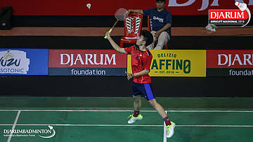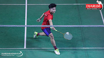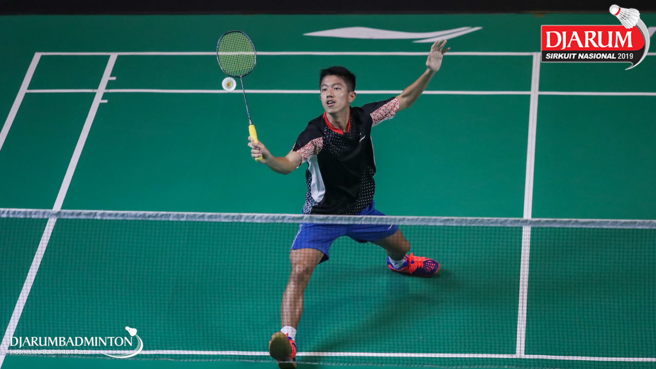 Alexander Jason Darmawan (Tangkas, Jaksel) berusaha menyambut shuttlecock