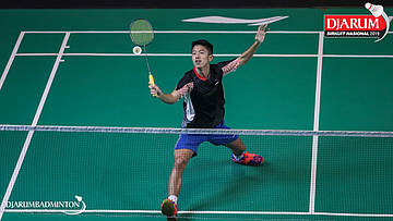 Alexander Jason Darmawan (Tangkas, Jaksel) mengembalikan shuttlecock