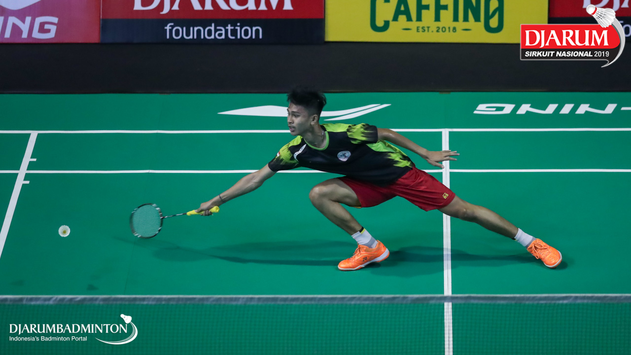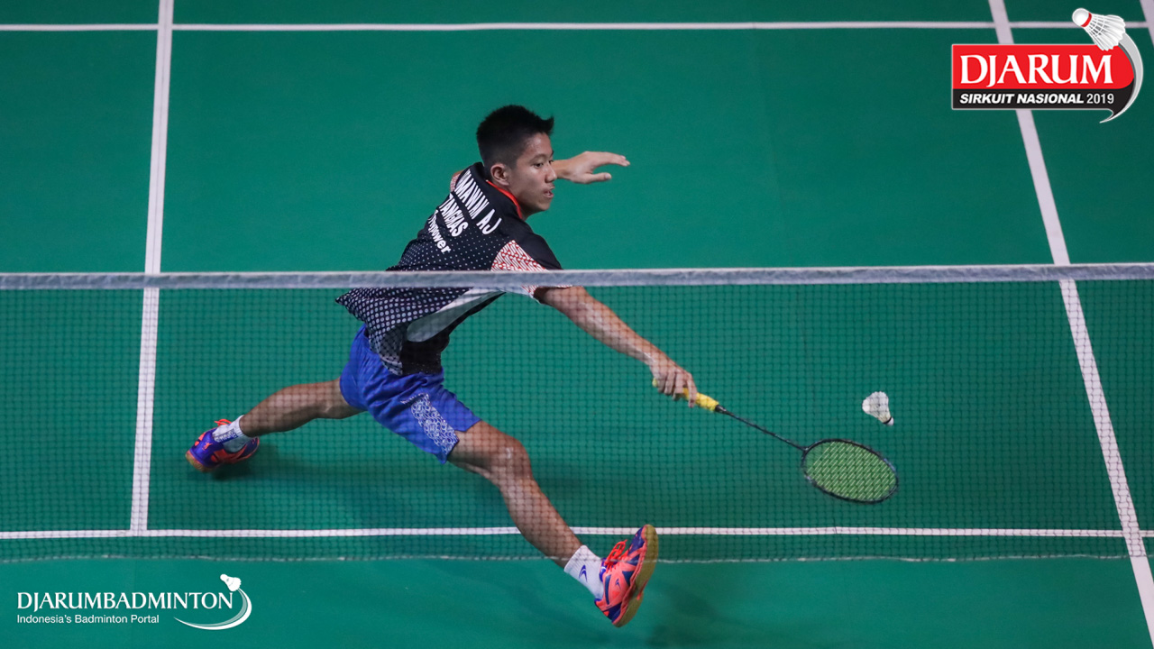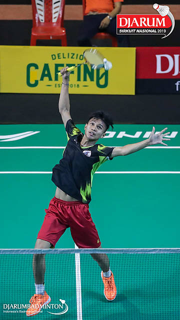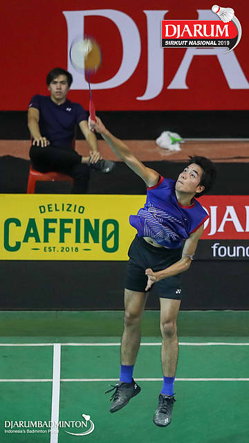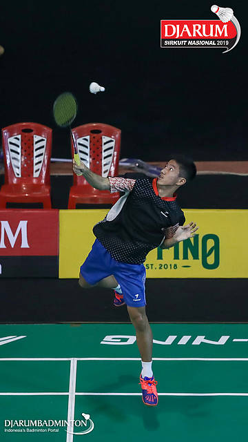 Gabriel Vincenzo Aprilio Tewuh (Bhayangkara Manado) menyambut shuttlecock
