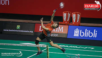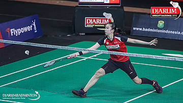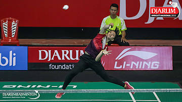 Sarah Daisy Theresia Christina Rambitan (Kasih, Jaksel) bersiap menyambut shuttlecock