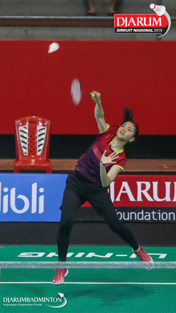 Ivanna Celia Handoyo (PB Djarum, Kudus) menyambut shuttlecock