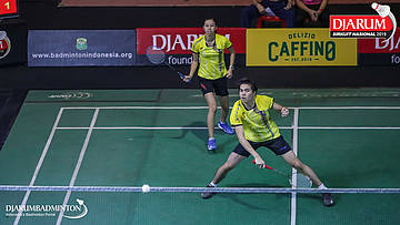 Ardiansyah Putra+Nadiya Melati (PB AIC Badminton Academy+Pertamina Fastron, Jakut) bersiap menyambut pengembalian
