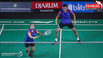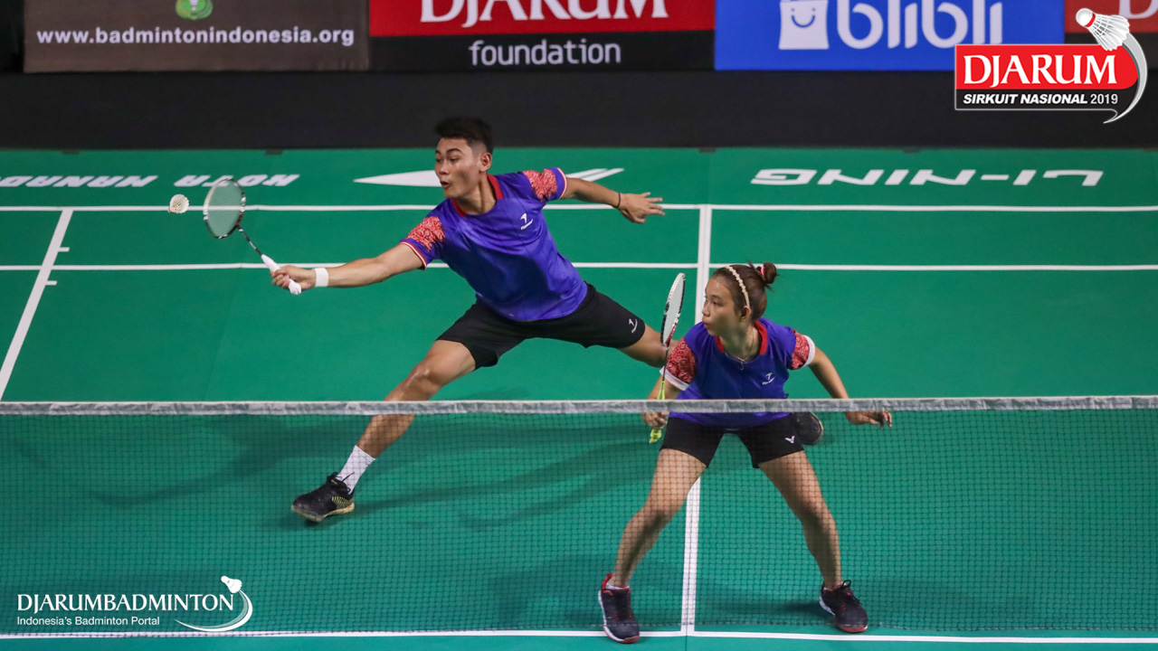 Ardiansyah Putra+Nadiya Melati (PB AIC Badminton Academy+Pertamina Fastron, Jakut) mengembalikan shuttlecock