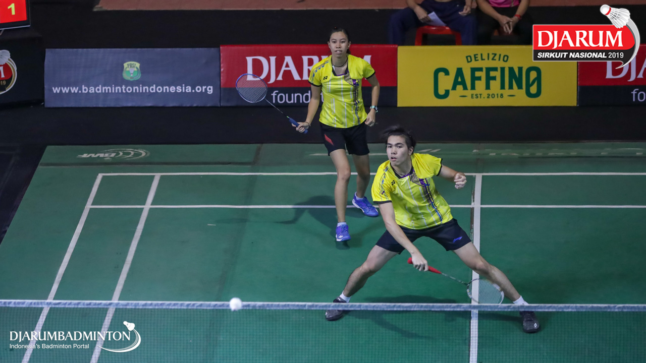 Joshua David Wardana+Tessa Anjali Karouw (Tangkas, Jaksel) bersiap menyambut shuttlecock