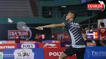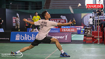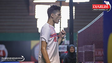 Ahmad Raihan Ishak (PB Victory Bogor, Jaktim) mengembalikan shuttlecock