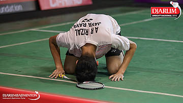 Christian Candra Halim+Eq Prayoga (Daihatsu Candra Wijaya) menyambut shuttlecock