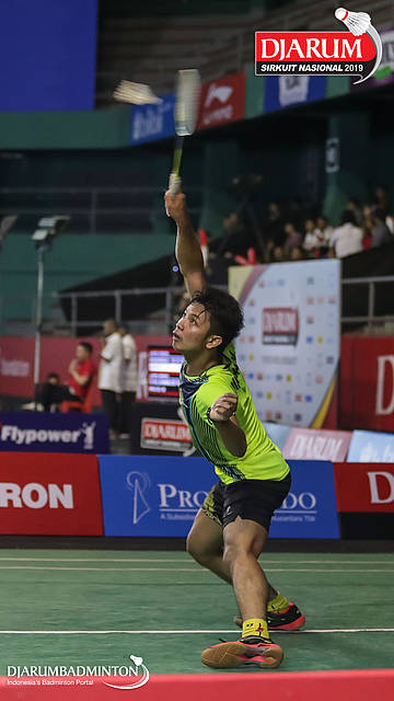 Jovi Michael (Focus Badminton Club, Jaksel) menyambut shuttlecock