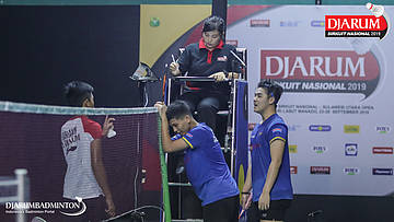 Christian Candra Halim+Eq Prayoga (Daihatsu Candra Wijaya) memprotes keputusan umpire