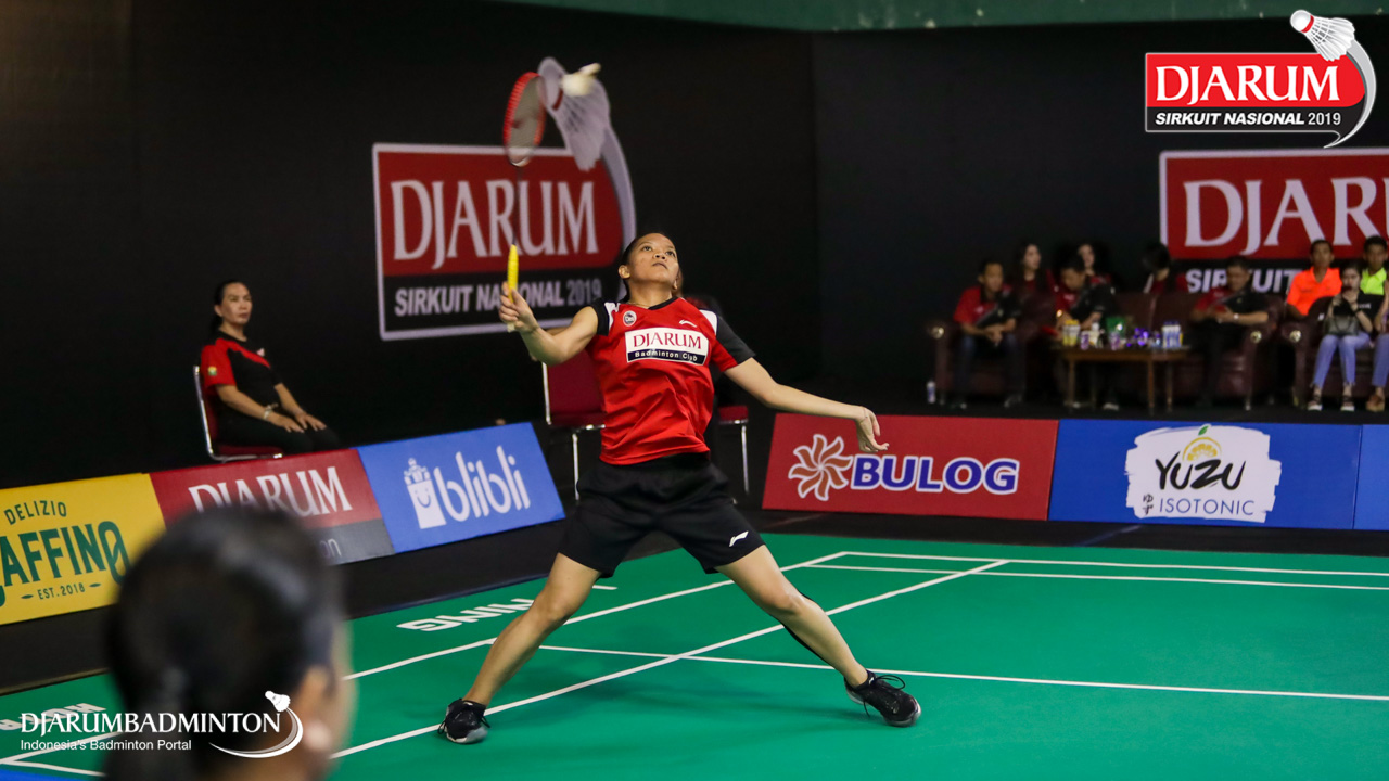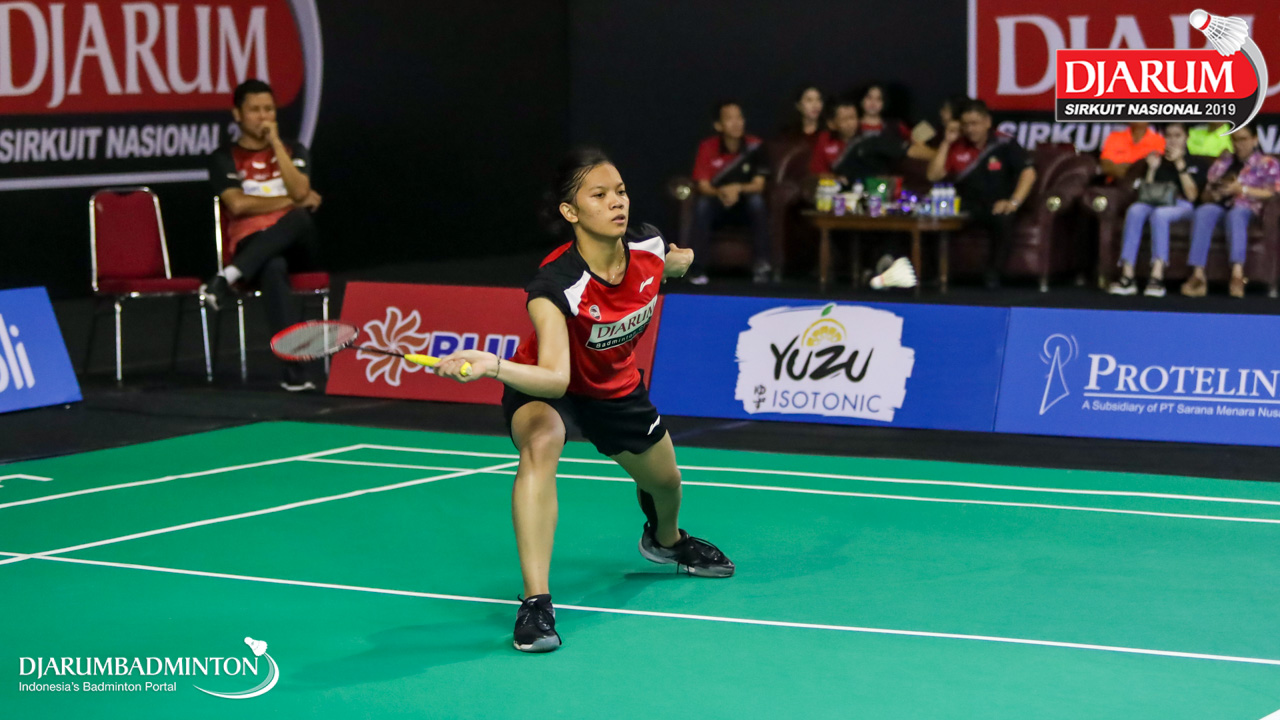 Alya Rahma Mulyani (PB Djarum, Kudus) bersiap menyambut shuttlecock