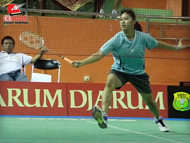 Pemain Djarum Kudus, Aida AA (kiri) tengah mendapatkan instruksi dari pelatihnya, Maria Elfira Christina kala berhadapan dengan pemain Jaya Raya, Shinta JN babak kualifikasi tunggal remaja putri Djarum Sirkuit Nasional Bali di GOR Purna Krida, Badung