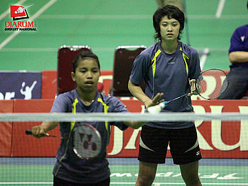 Dina Rahayu berpasangan dengan Merissa Findiany (PB SGS PLN Bandung) di babak penyisihan Ganda Remaja Putri Djarum Sirkuit Nasional (Sirnas) Pangkalpinang