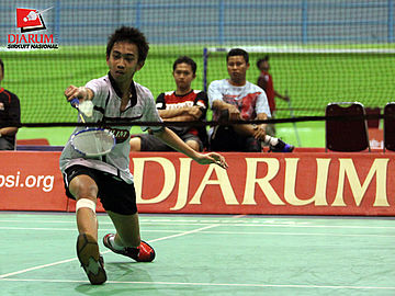 M. Bayu Pangisthu (PB Djarum) di babak penyisihan Tunggal Dewasa Putra Djarum Sirkuit Nasional (Sirnas) Pangkalpinang