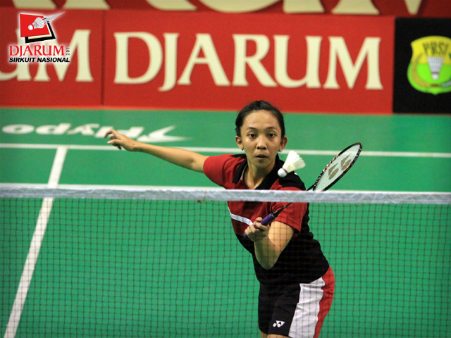 Pemain Pelatnas, Maziyyah Nadhir saat Final melawan pemain Pertamina, Ganis Nur Rahmadani di turnamen Djarum Sirkuit Nasional Surabaya di GOR Sudirman, Surabaya, Sabtu (5/11).