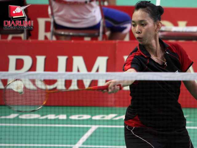 Pasangan asal Pusdiklat Jaya Raya, Eri/Wulan berusaha mengembalikan kok ke arah pasangan Aan Dwicahyati/Ganis Nur Rahmadani.