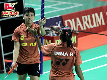 Pasangan Dina Rahayu/ Warih (SGS PLN) melakukan selebrasi