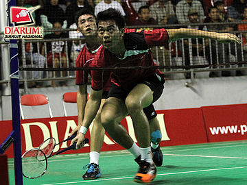 Pebulutangkis PB Djarum Kudus, Thomi Azizan (kanan) saat berduel dengan Alamsyah Yunus (Pertamina Indonesia).