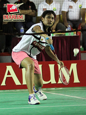 Febby Agguni (PB Djarum Kudus) mengembalikan bola ke arah Dinar Dyah.