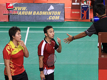 Pemain Ganda Dewasa Campuran asal Jaya Raya Suryanaga, Trikusuma Wardhana yang berpasangan dengan Variella Aprilsasi dikenai kartu kuning oleh wasit dalam pertandingan final melawan pasangan Ardiansyah Putra/Lita Nurlita.