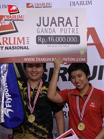 Juara 1 Ganda Dewasa Putri Djarum Sirnas Jambi Open 2012, pasangan Variella Aprilsasi (Jaya Raya Suryanaga)/Lita Nurlita *SGS PLN Bandung).