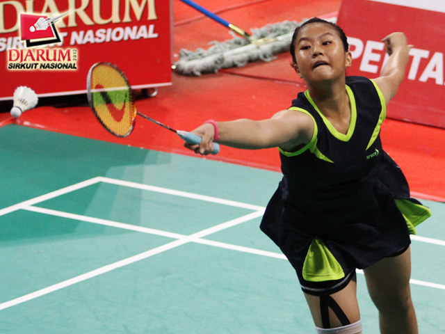 Ganis Nurramadhani (Pertamina) berusaha mengembalikan kok ke arah Natalia Deiske (Tangkas Alfamart Jakarta)