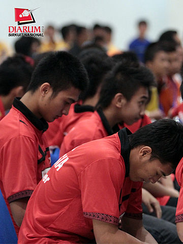 Peserta Djarum Sirnas Palembang 2012 dari PB Djarum menundukkan kepala saat doa bersama.