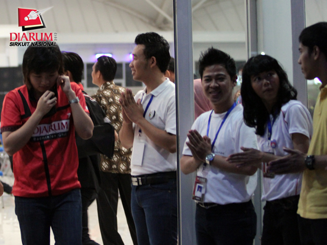 Panitia acara pembukaan Djarum Sirnas Palembang 2012 menyambut tamu yang datang.