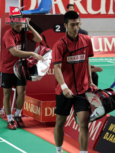 Pemain ganda taruna putra PB Djarum, Jeka Wiratama/Rafiddlas Akhdan Nugroho menang walkover dalam pertandingan babak kedua Djarum Sirnas Sumatera Open 2012.