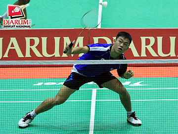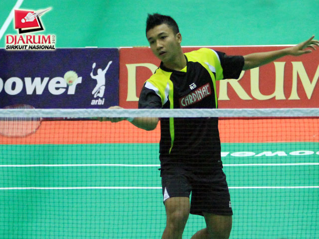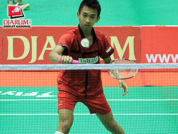 Rudi Cahyadi Budhiawan (Djarum Kudus) sedang melakukan jump smash.