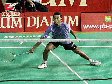 Ryan Fajar (PB Djarum Kudus) meminta pergantian shuttlecock.