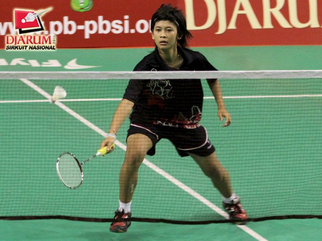 Lanny (Jaya Raya Suryanaga) berhasil mengebalikan smash keras yang dilepaskan Uzchi Ananda (Guna Dharma).