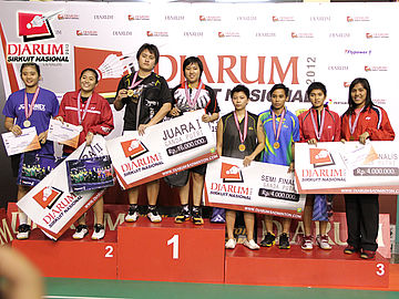 Para juara di kelompok ganda dewasa putri.