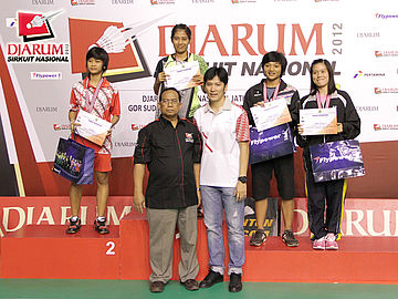 Para wasit Djarum Flypower Sirkuit Nasional (Sirnas) Jatim Open 2012 berpose bersama sebelum laga final dimulai.