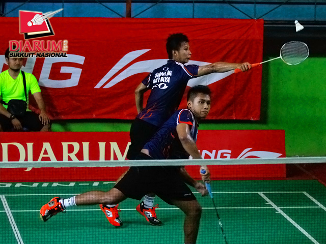 Unggulan pertama ganda taruna putra asal Guna Dharma, Rizko Asuro/Wildan Atmaja berhasil membaca serangan dari Moh. Amin/Rixy Sirnall (Jaya Raya Suryanaga).