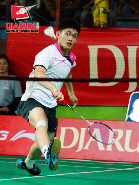Alamsyah Yunus (Pertamina Indonesia) dengan tenang menyambut pengembalian kok dari Evert Sukamta (Tangkas Specs).